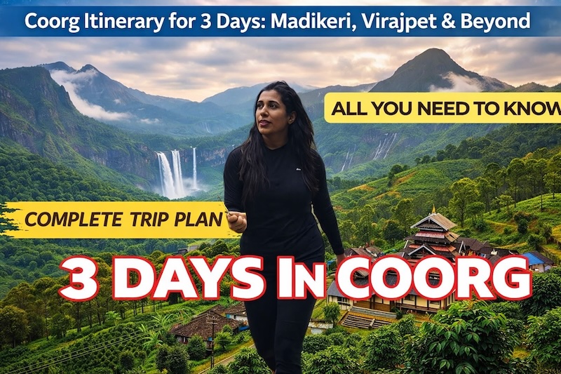 A well-planned 3-day itinerary is enough to experience the essence of Coorg. From the scenic charm of Madikeri to the natural beauty of Virajpet and the hidden gems beyond, this journey offers a perfect balance of exploration and relaxation.