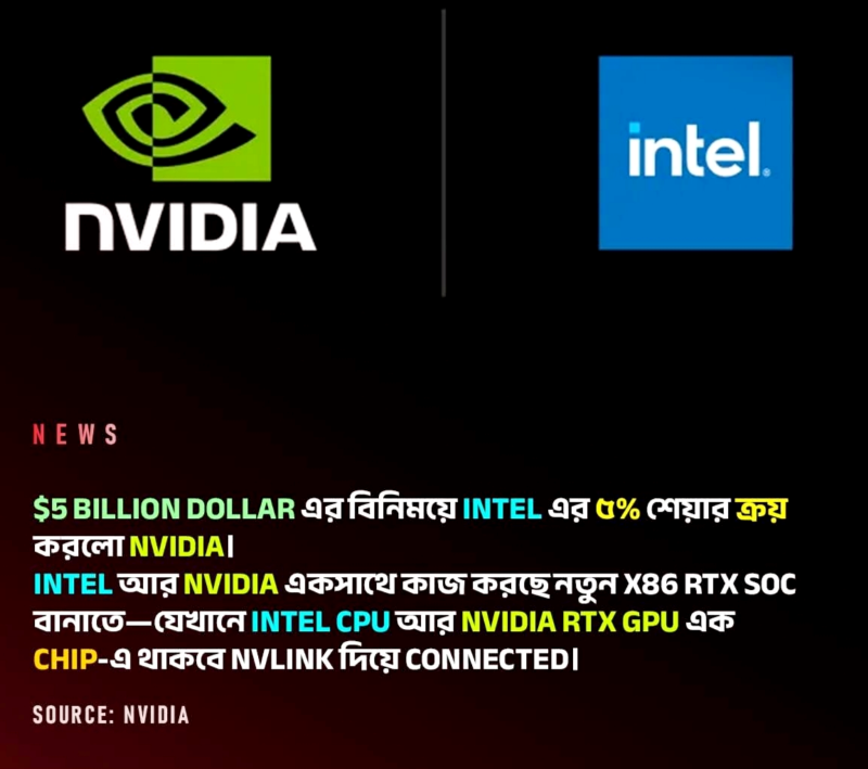 NVIDIA Invests 5 Billion Dollars in Intel and Plans Joint CPU GPU Chip