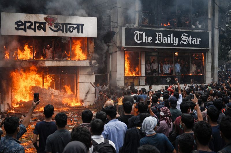 Protesters Storm and Set Fire to Offices of Major Newspapers in Dhaka After Death of Student Leader